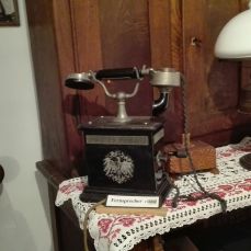 Hier noch ein Bild von dem Telefon, welches damals noch ganz anders funktionierte. Zuerst hat man bei einer Vermittlung angerufen, die einen dann mit dem gewünschten Gesprächspartner verband. Aber auch das war kompliziert, da die Frau die Kabel an einem Schaltkasten umstecken musste.